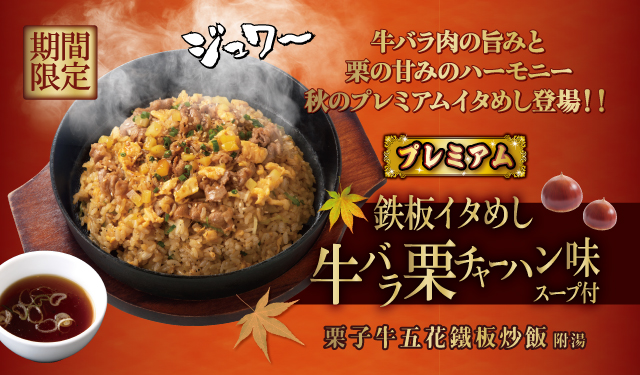 香甜栗子與牛五花的油脂香氣交融,淋上鮮美濃郁的特調牡蠣醬油, 完美演繹視覺與味蕾的秋季饗宴 !