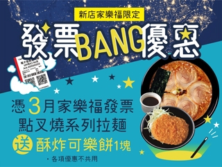 憑3月份家樂福發票點叉燒拉麵享<酥炸可樂餅>1塊