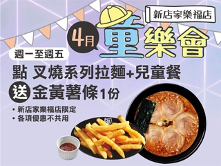 4/1-4/30 點叉燒系列拉麵+兒童餐送<金黃薯條>1份!