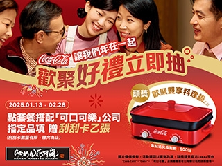 點套餐搭配「可口可樂」公司指定飲品,即贈 <刮刮卡 乙張>