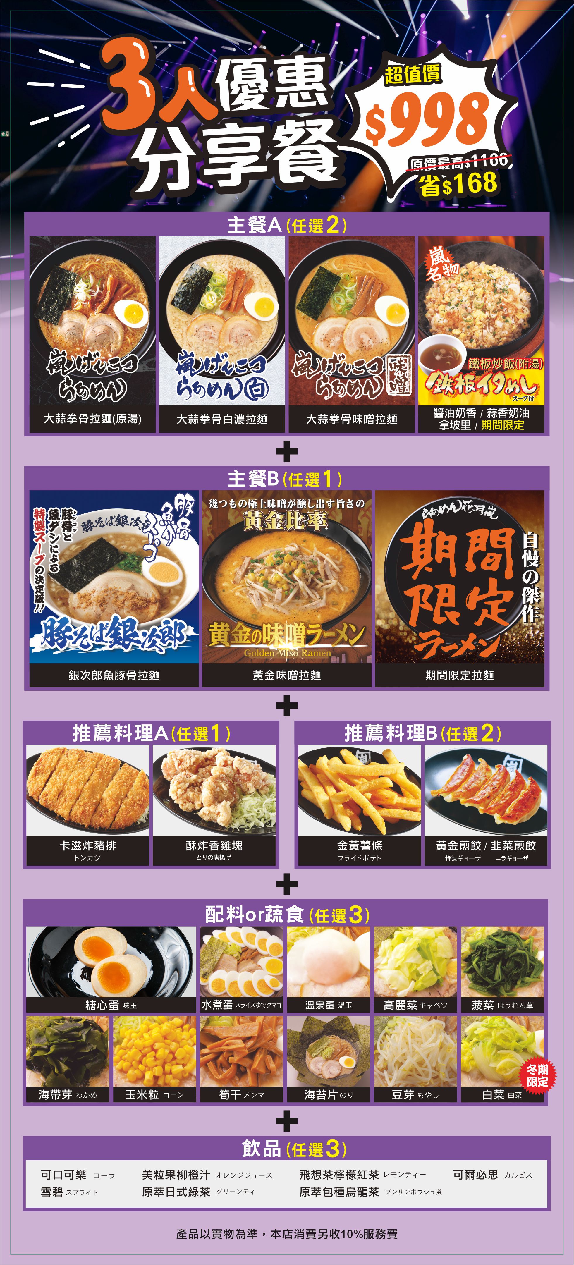 3人優惠分享餐 激省價$998