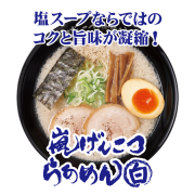 優質拳骨加入大蒜熬煮出甘美鮮郁的濃厚湯頭,融入細緻而出色的鹽味拉麵!建議搭配海帶芽等配料享用。