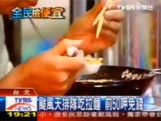 │TVBS│颱風天排隊吃拉麵前50名呷免錢