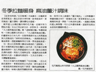 | 聯合報 | 冬季拉麵暖身 麻油薑汁調味