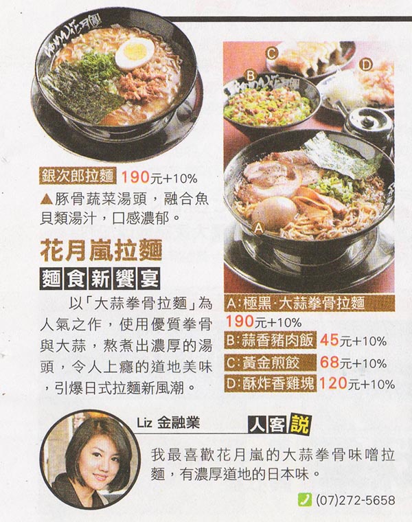 以「大蒜拳骨拉麵」為人氣之作,使用優質拳骨與大蒜,熬煮出濃厚的湯頭,令人上癮的道地美味,引爆日式拉麵新風潮。