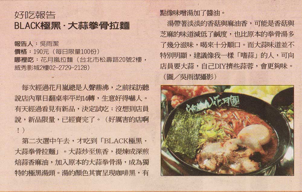 有人經過看見新品,決定試吃;沒想到店員說,新品限量,已經賣完了。(好厲害的店啊!) 第二次選中午去,才吃到「BLACK極黑‧大蒜拳骨拉麵」。
