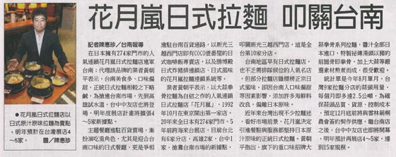 近年來台灣出現不少拉麵迷,看好市場前景,花月嵐決定引進餐點與服務都堅持日本原汁原味的正統日式拉麵。